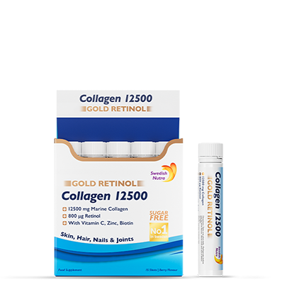 Aside from being easier to swallow, a liquid is more readily absorbed as soon as it enters the stomach. Daily dosage (25 ml) of Swedish Nutra collagen contains up to 10,000 mg of hydrolysed collagen which can be upto 40 times more than a typical collagen tablet.