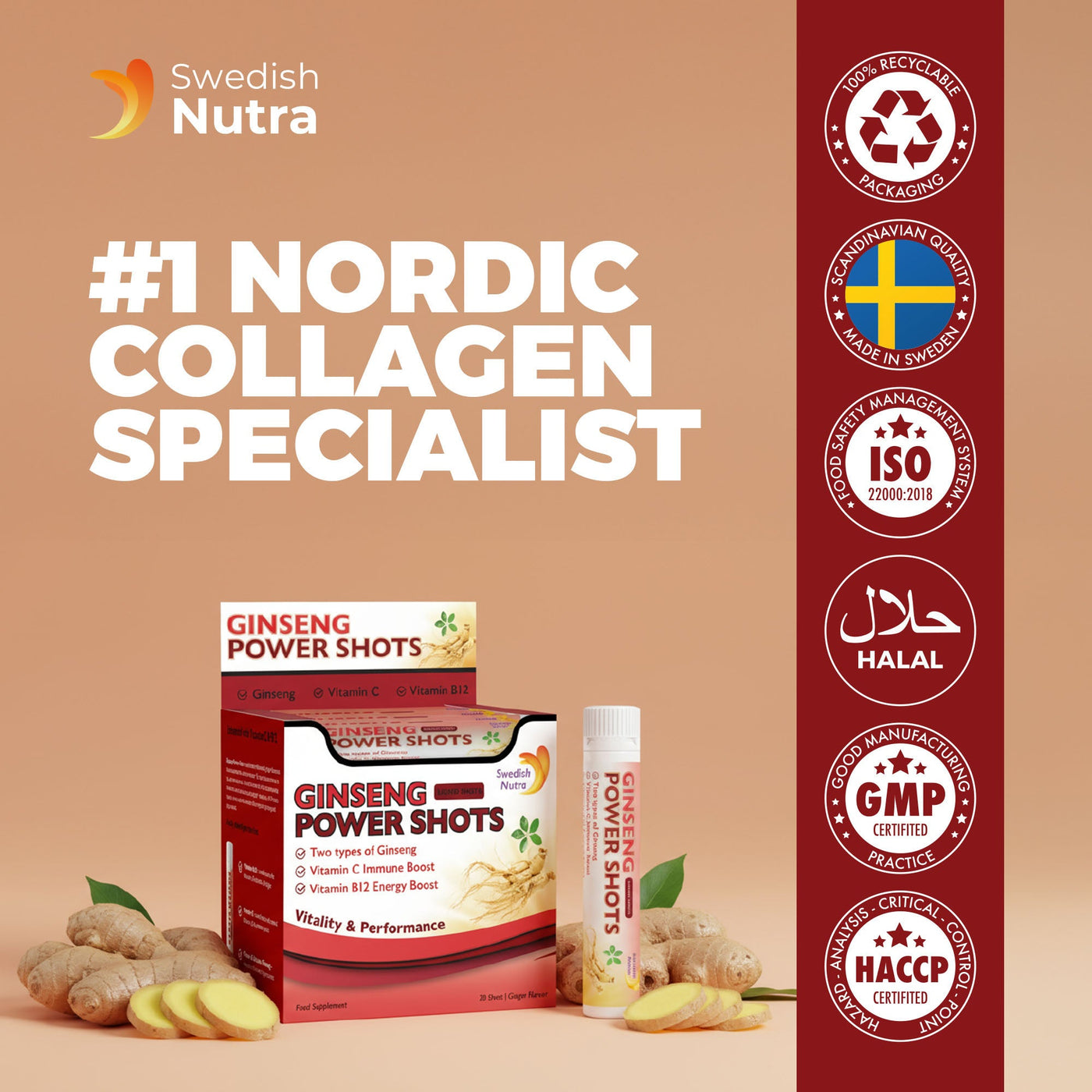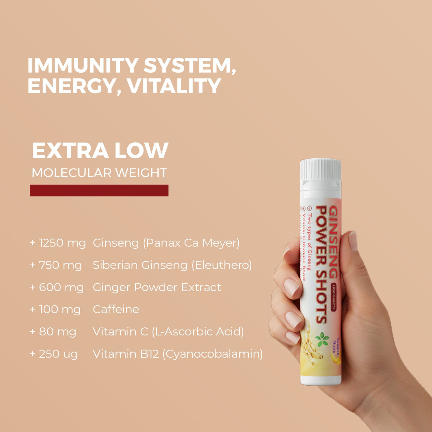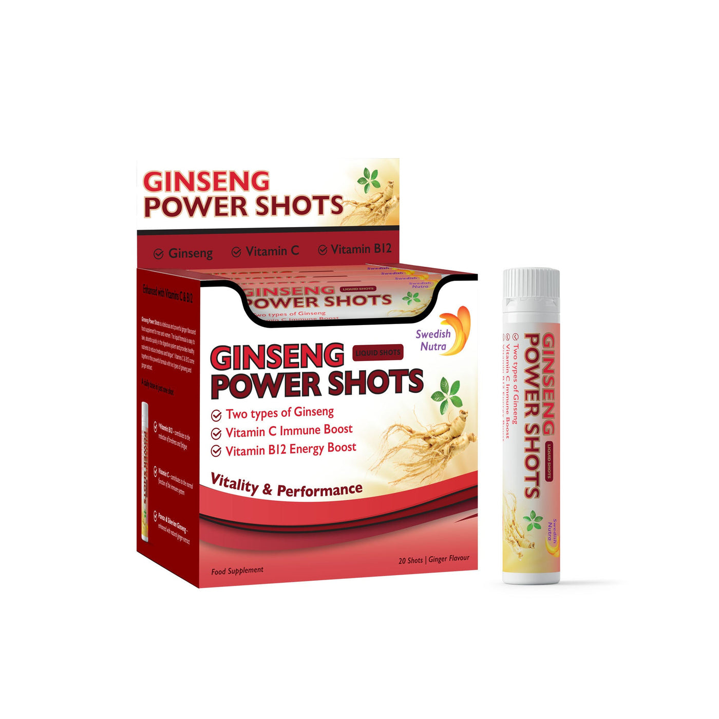 Unlike sugary energy drinks or capsules, Swedish Nutra Ginseng Power Shots offer clean, liquid nutrition that is fast-absorbing, effective, and long-lasting.